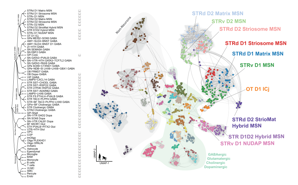 This resource presents a cross-species consensus taxonomy of basal ganglia cell types across human, macaque, marmoset, and mouse. Supported by the NIH BRAIN Initiative Cell Atlas Network (BICAN) this resource provides standardized nomenclature based in-part on pre-existing literature supported by conserved marker gene expression.