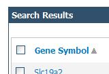Please note-- If you searched by gene, it may appear that some of the rows do not match your gene criteria. Keep in mind that by default all of the alternate gene symbols (which are not shown in the result list) are included in a gene search. To see the alternate symbols for a gene, click on the gene symbol in the result list. If you want to exclude alternate symbols from your gene search, try the Advanced Search page.